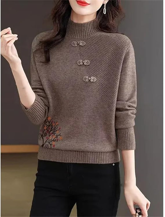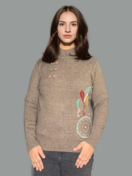 T- Neck Pullover with Elegant Work (Soft Warm Yarn)