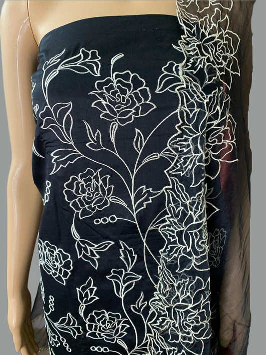 Cotton Silk Unstitched Suit with Organza Dupatta