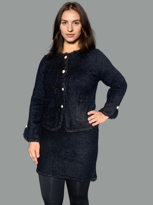 Long Sleeves solid textured Jacket with Skirt Co-Ord Set