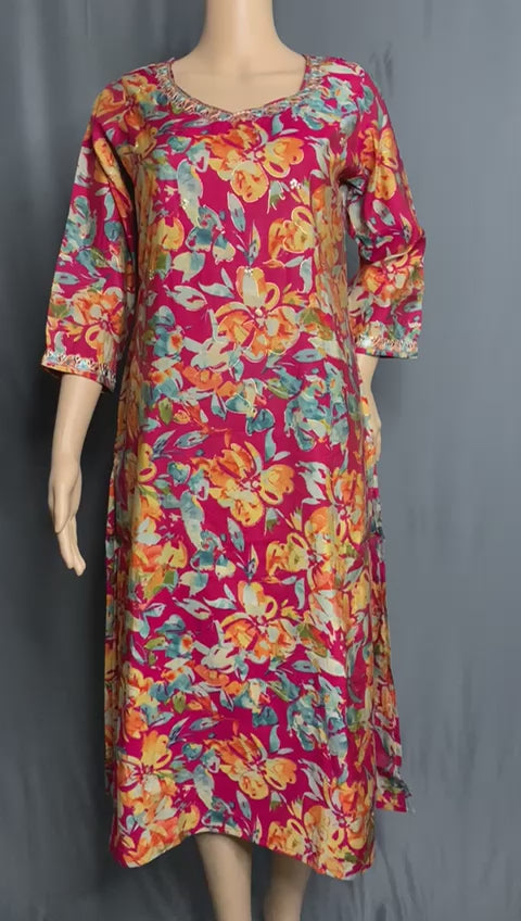 Multicolor Moss Digital Floral Printed Kurta With Pant