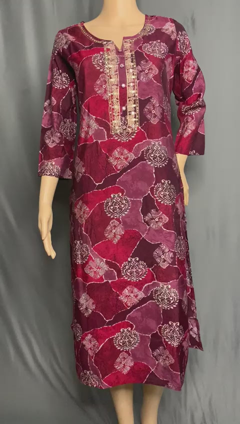 Maroon Poly Crepe Ethnic Motifs Kurta With Pant