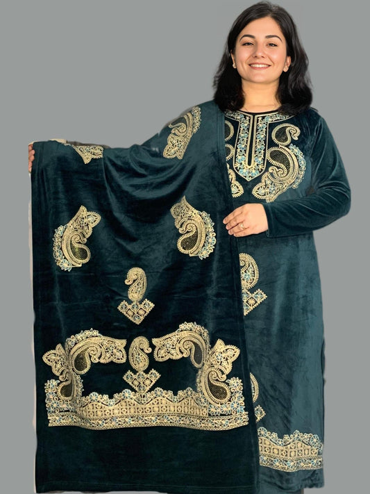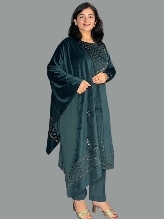 Turquoise Poly Silk Thread Work Kurta with Pant