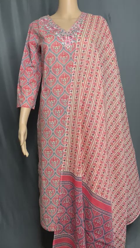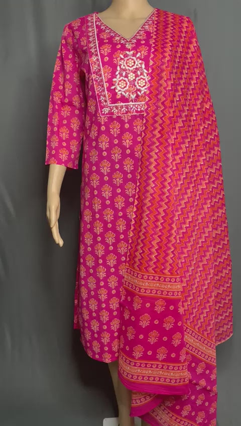 Yellow Cotton Embroidered Kurta with Palazzo and Dupatta