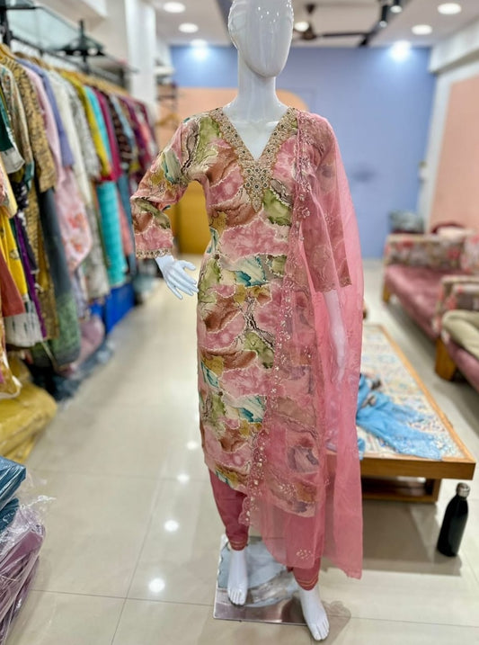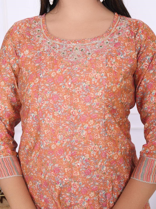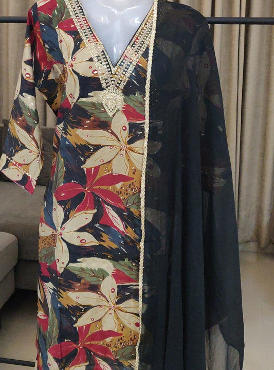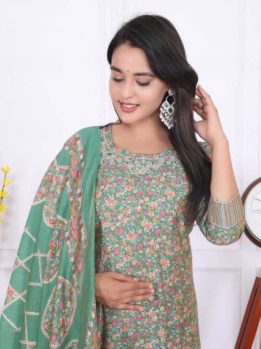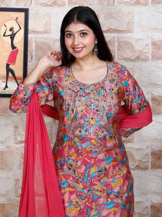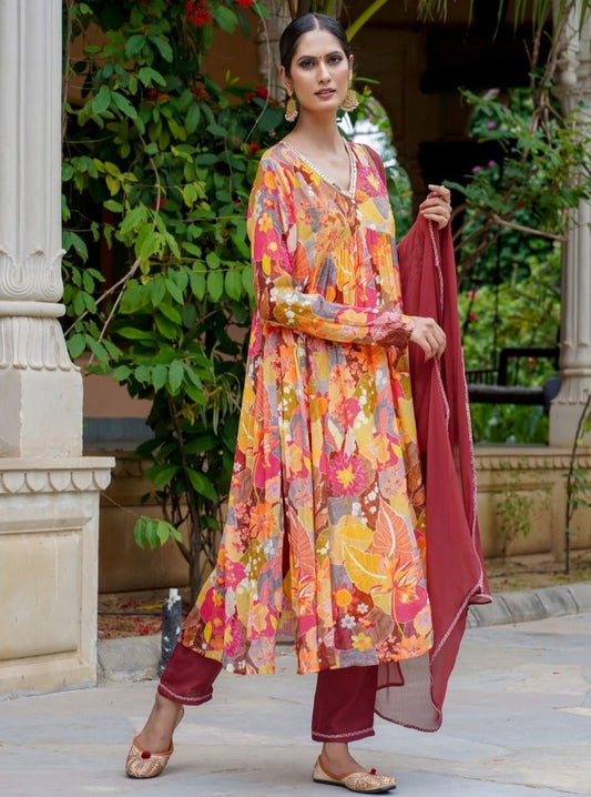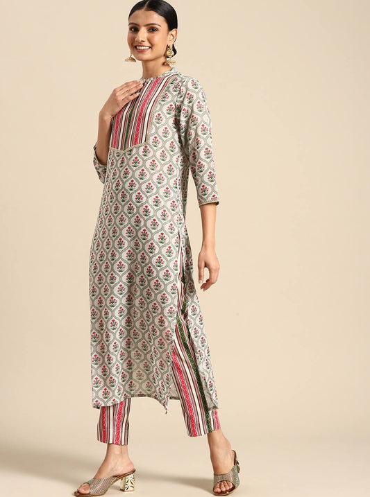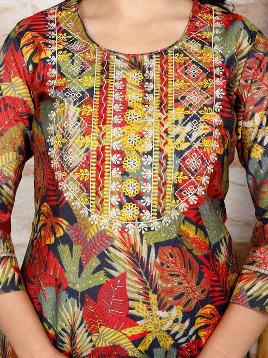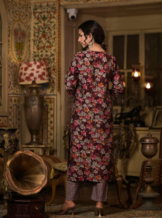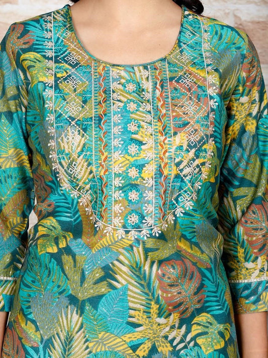Multicolor Moss Digital Floral Printed Kurta With Pant