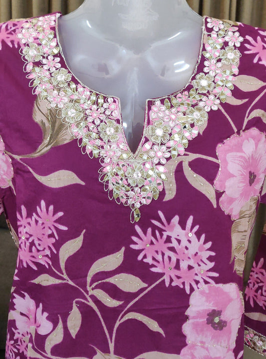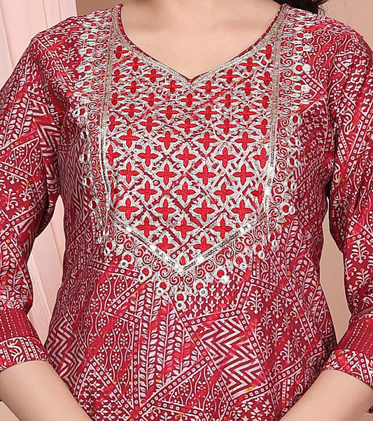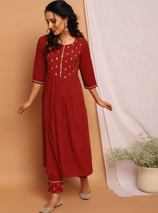 Maroon Poly Crepe Ethnic Motifs Kurta With Pant