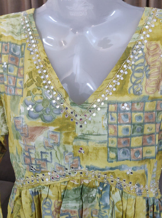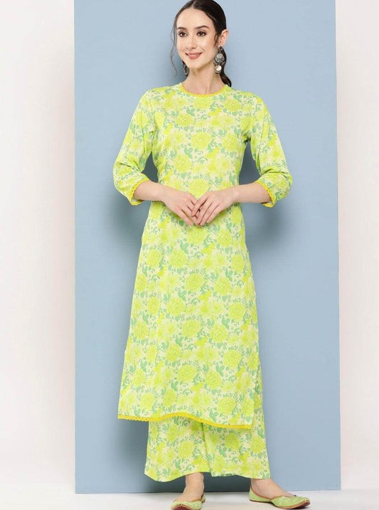 Lemon Green Crepe Digital Printed Kurta With Palazzo