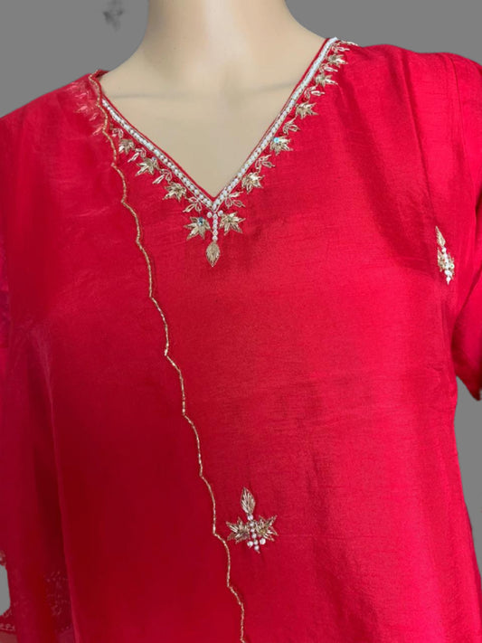 Orange Angrakha Pure Cotton Kurta with Trousers and Dupatta