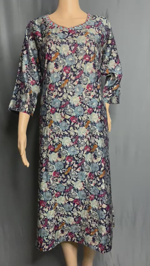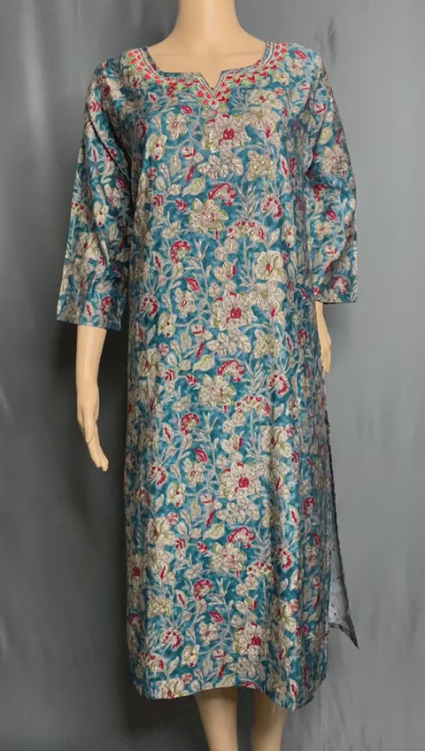 Muslin Silk Kurti with Elegant Embroidery - Blue