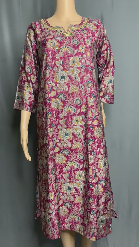 Muslin Silk Kurti with Elegant Embroidery - Pink