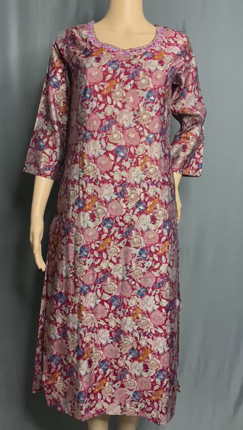Muslin Silk Kurti with Elegant Embroidery - Maroon