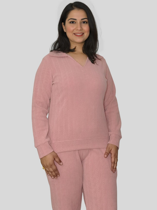 Sold outTwo-Piece Soft Wool Coord Set - Pink