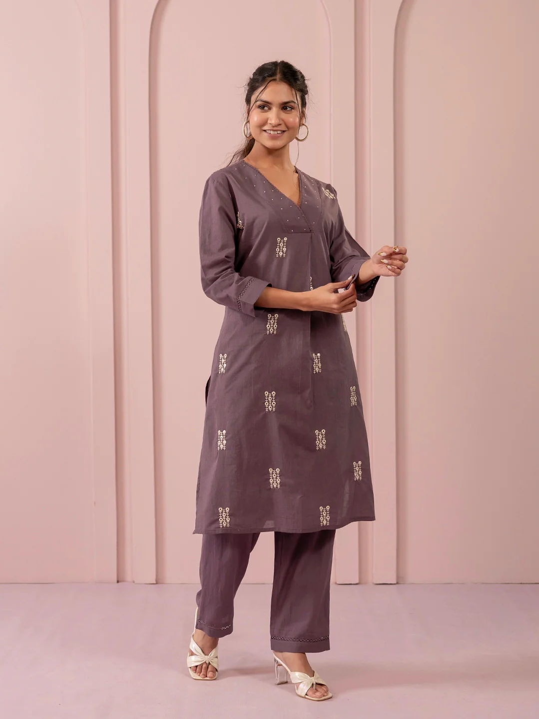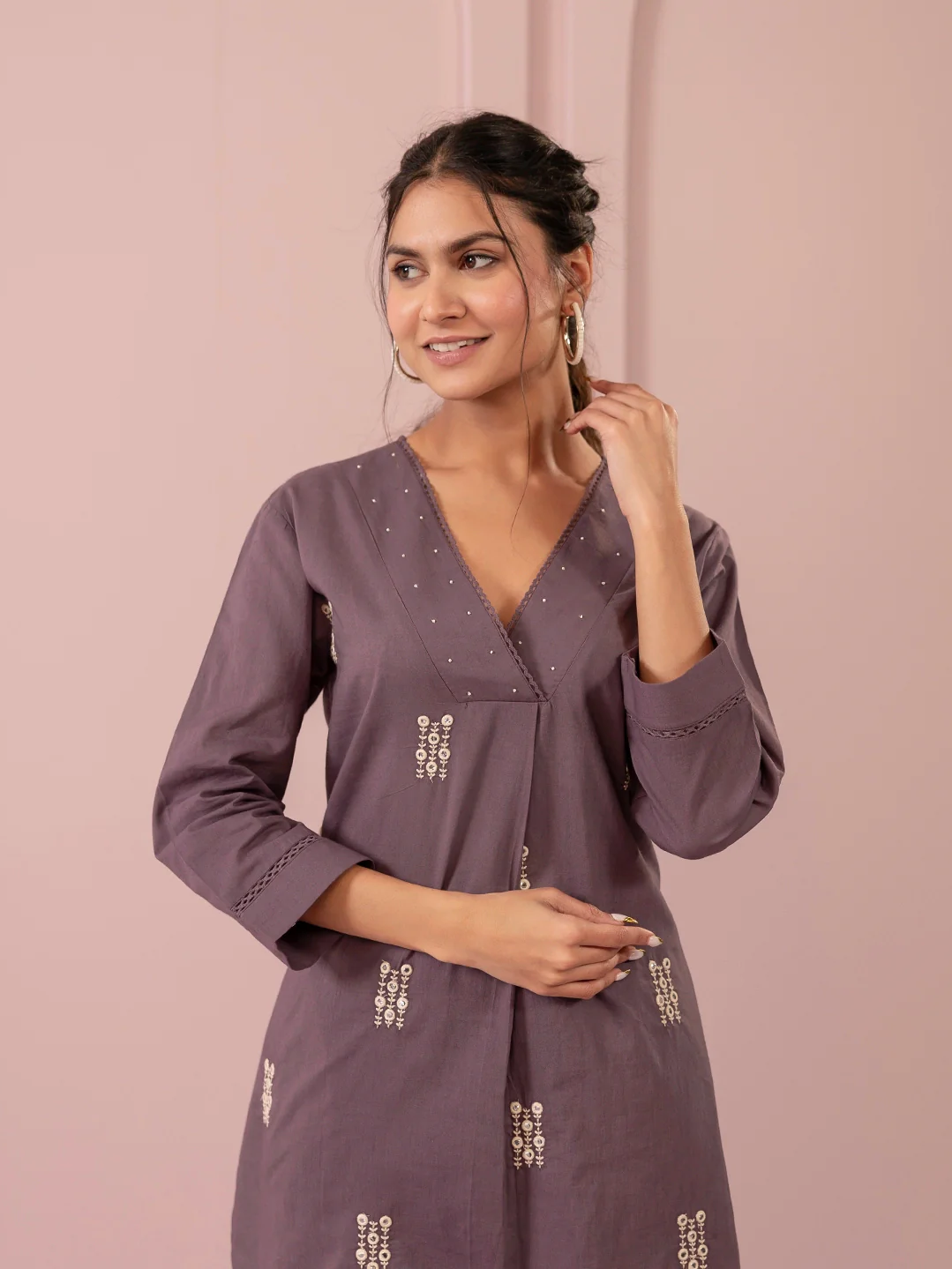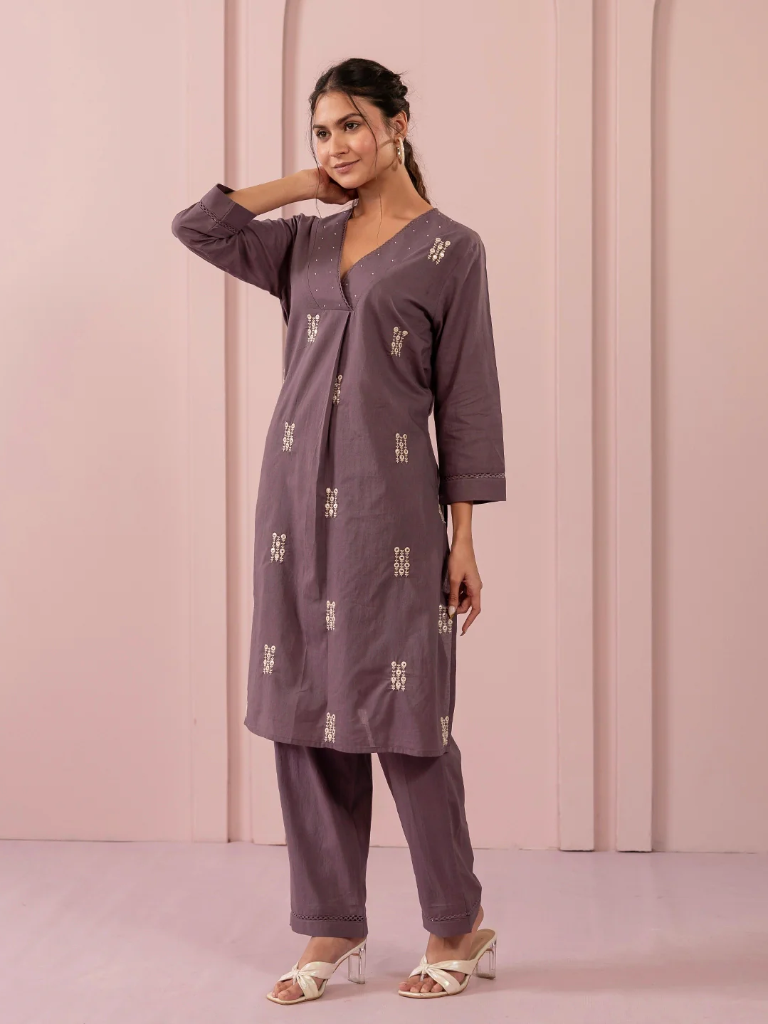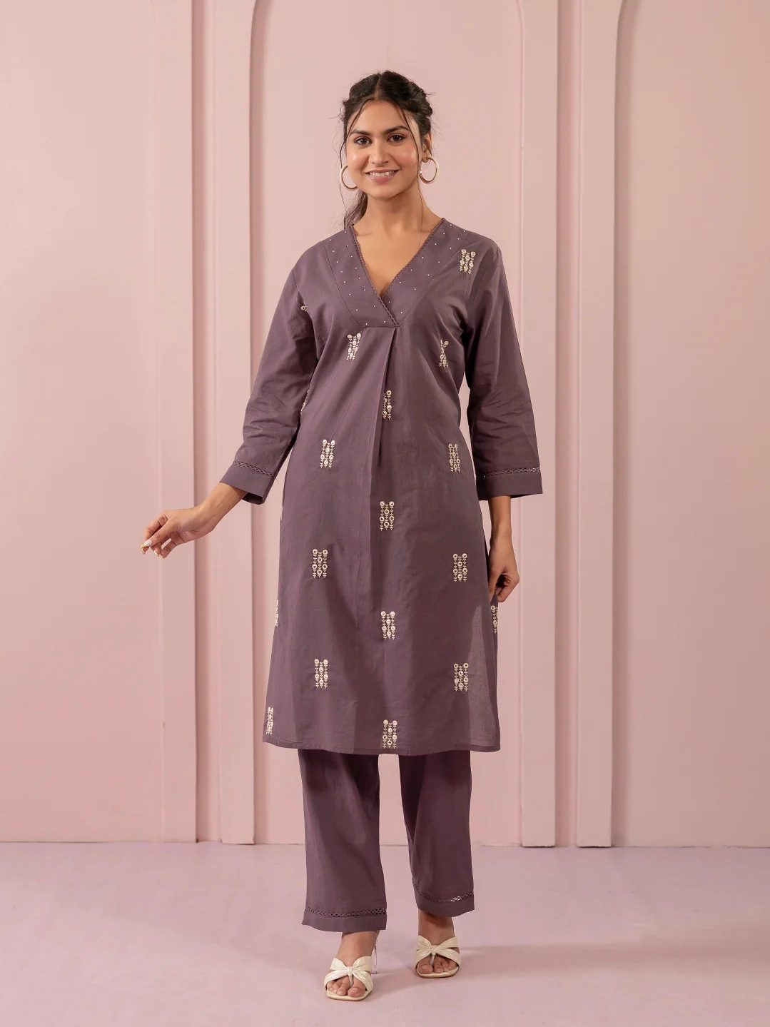 Purple Embroidered Kurta Set, where intricate embroidery meets a rich shade of purple, perfect for every occasion.