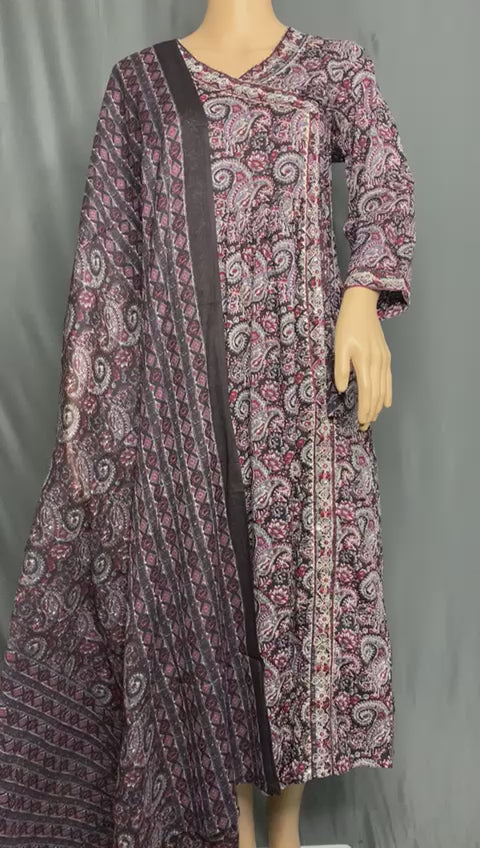 Cotton Anarkali 3 piece set with all over embroidery on the kurta and dupatta!