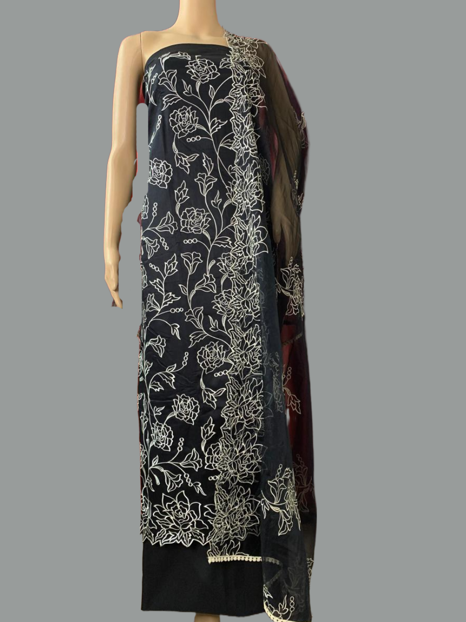 Cotton Silk Unstitched Suit with Organza Dupatta